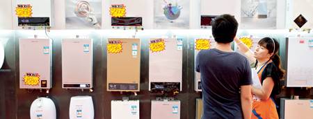 ▲ 顧客在選購燃氣熱水器