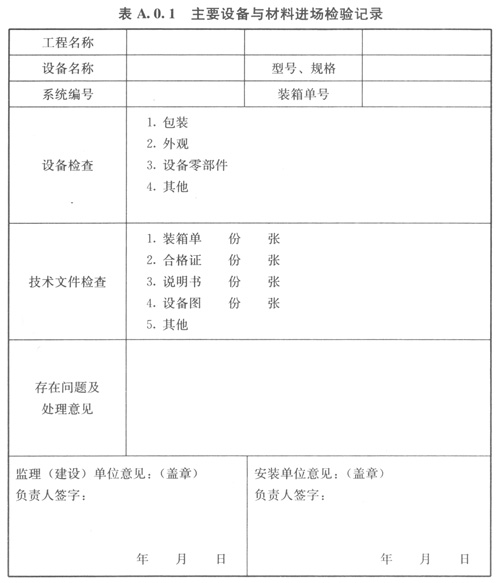 A01主要設備與材料進場檢驗記錄可按表A01的格式記錄。