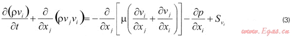 如果特性量是速度(動量),即Φ=Vj,源項為受到的外力和內(nèi)力。對于不可壓縮流體,則得到動量方程: