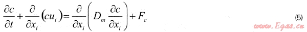 式中Dm為擴散系數(shù),F(xiàn)c為組分c的輸入源o