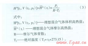 對于給定摩爾組分的理想燃氣組分,在燃燒溫度tl和壓力pl、計量溫度t2和壓力p2時的理想體積高熱值計算公式如下: