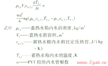 設定蓄熱水箱內(nèi)水溫分布一致,忽略散熱損失,蓄熱水箱內(nèi)水的熱平衡方程為: