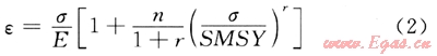 式中ε是工程應變;σ是軸向應力;E是彈性模量;n和r是Rarnberg-Qsgood參數(shù);SMYS是屈服應力。
