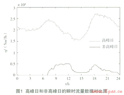 圖1表示:用氣高峰日和非高峰日內(nèi)下游用戶一天內(nèi)用氣量隨時間的變化過程;圖2表示:一年內(nèi)260天的日平均用氣量。從圖1和圖2中可以看出:高峰日和非高峰日,高峰時段和非高峰時段時,天然氣的流量變化范圍很大,在考慮性價比的情況下,實際流量計的選擇必須覆蓋流量上限。由此可能會出現(xiàn):在用氣量低谷時,實際運行流量接近或低于流量計下限,從而引起流量的測量不準確。