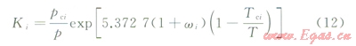 由各組分的臨界溫度(Tci)、臨界壓力(pci)以及地層溫度(T)和壓力(p),給出一個計(jì)算初始Ki值的經(jīng)驗(yàn)公式為: