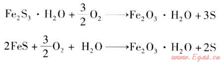 Fe203·H20+3H2S→Fe2S3·H20+3H20