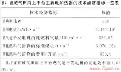 在崖城氣田海上平臺(tái)上,除了三甘醇再沸騰器以外,還有一些生產(chǎn)設(shè)備和生活設(shè)施是需要使用熱源的,其主要電加熱器一覽表見表3。