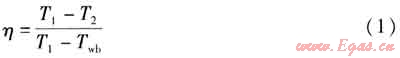 直接蒸發(fā)冷卻的空氣處理過程的蒸發(fā)冷卻效率定義為: