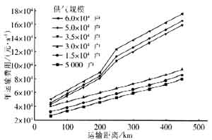 圖4 年運(yùn)輸費(fèi)用隨供氣規(guī)模的變化曲線